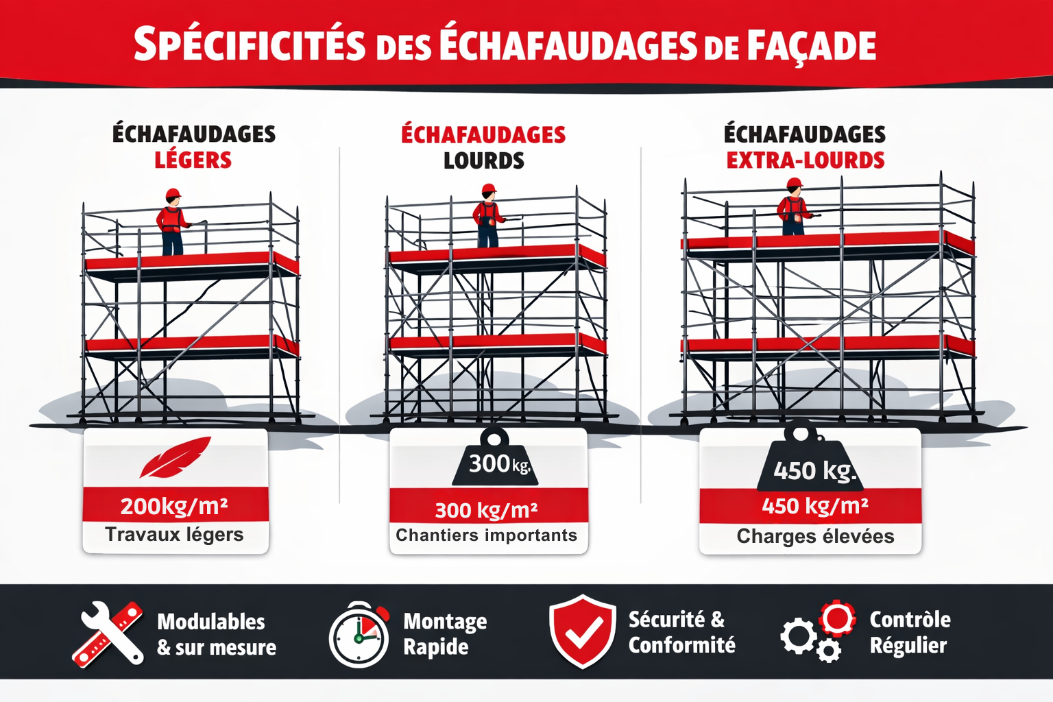 Idéal pour des travaux rapides ou des façades légères. Montage et démontage rapides pour une intervention efficace.